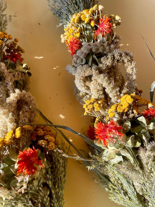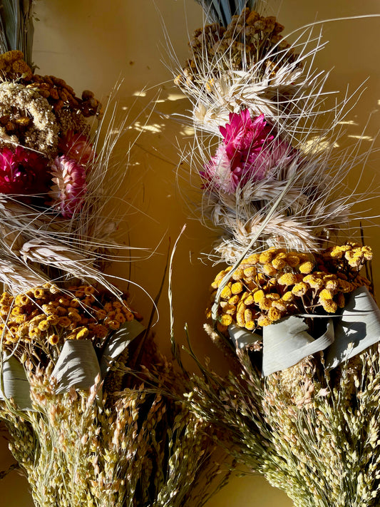 Easter Palm with Dried Yellow Achillea and Orange Safflowers