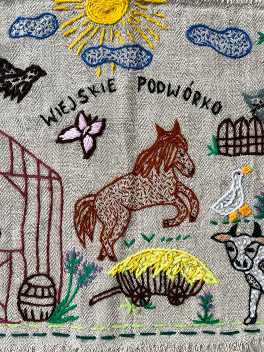 Country Yard Hand Embroidered Wall Hanging by Anna