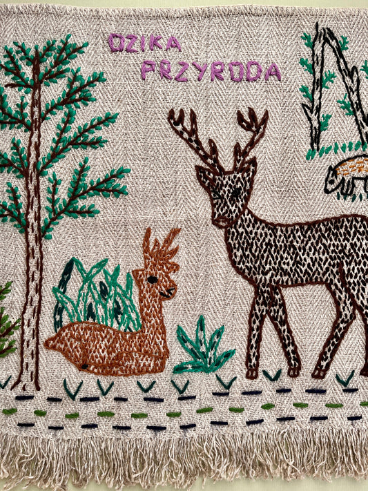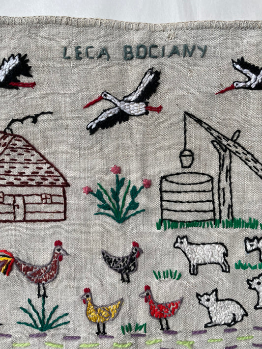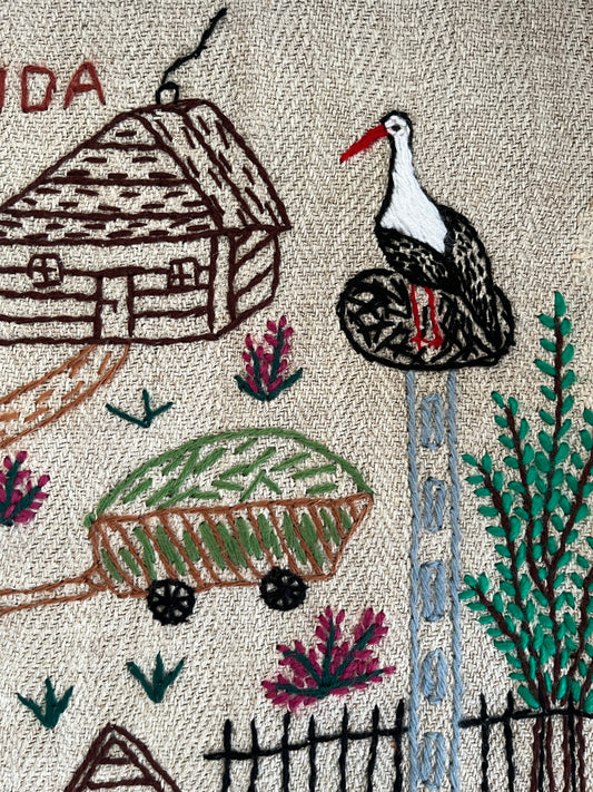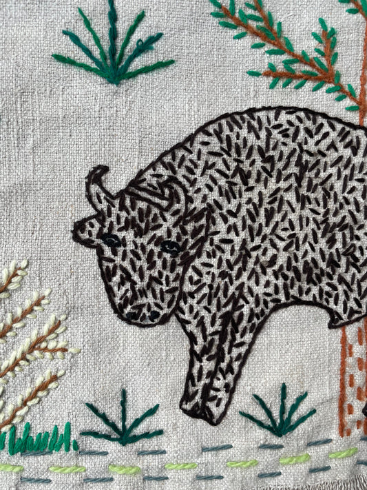 Bisons, Storks and Eagle Hand Embroidered Wall Hanging by Anna