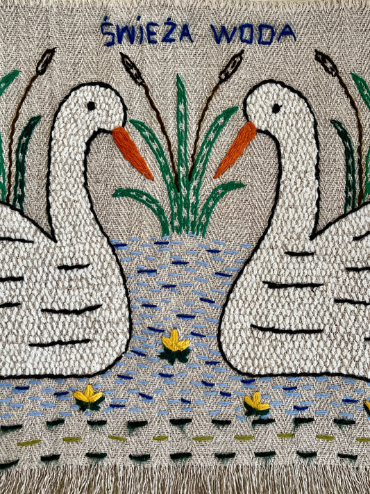 Flying Storks Hand Embroidered Wall Hanging by Anna