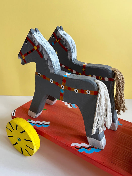 Grey Horses with Cart Pull Along Toy by Wlodzimierz