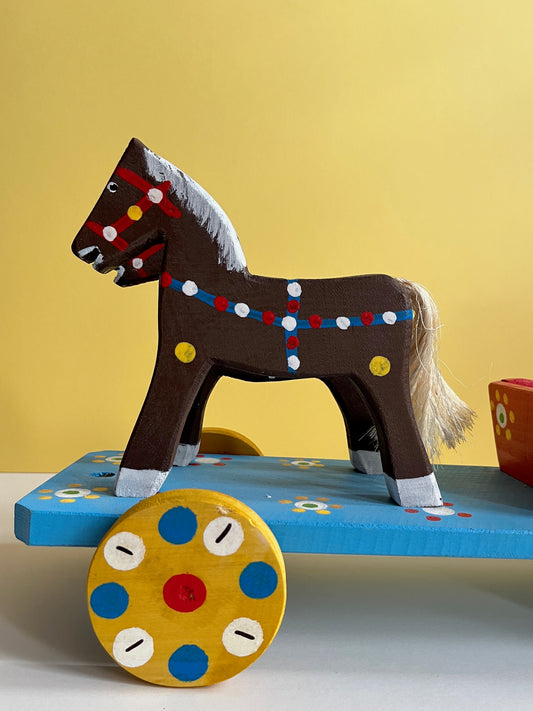 Red Horse with Cart Pull Along Toy by Wlodzimierz