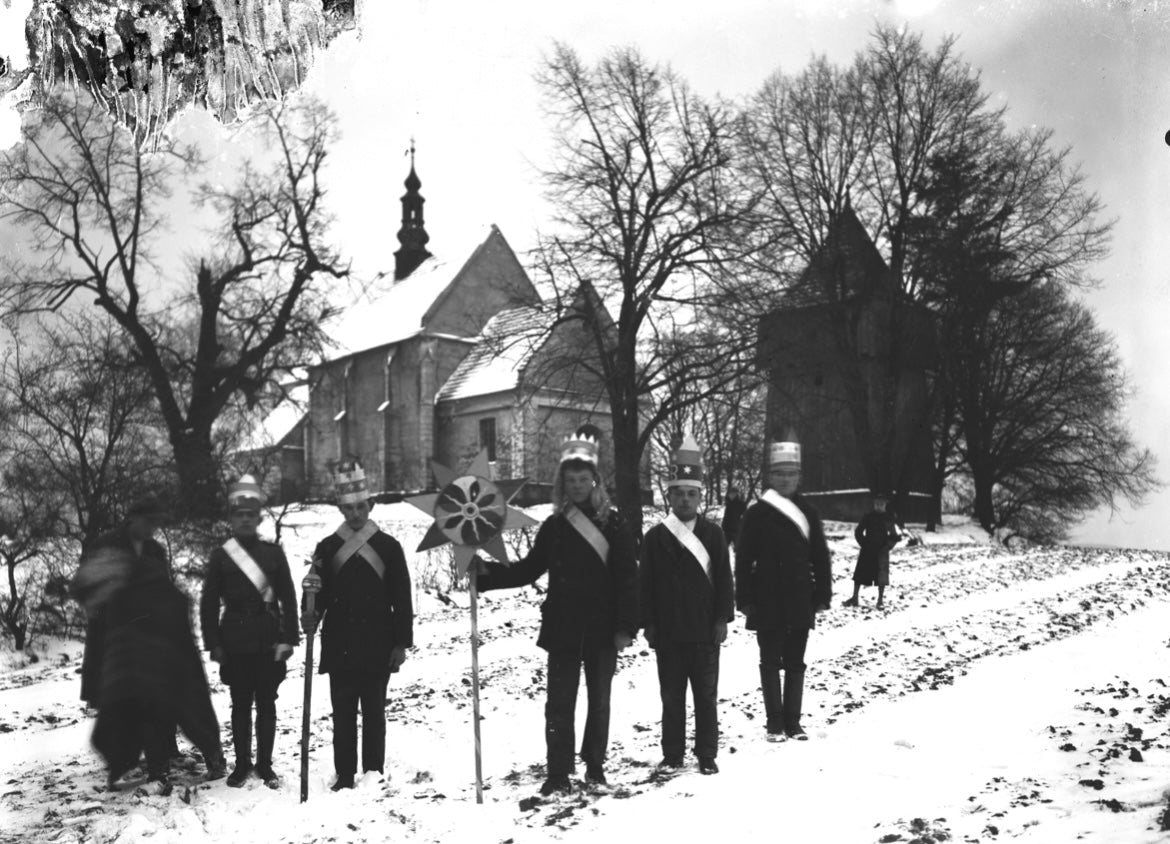 Boys carrying a Szopka Krakowska Folk Christmas Card
