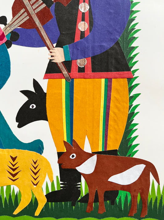 Nativity Scene with a Musician and Ram Original Papercut by Maria