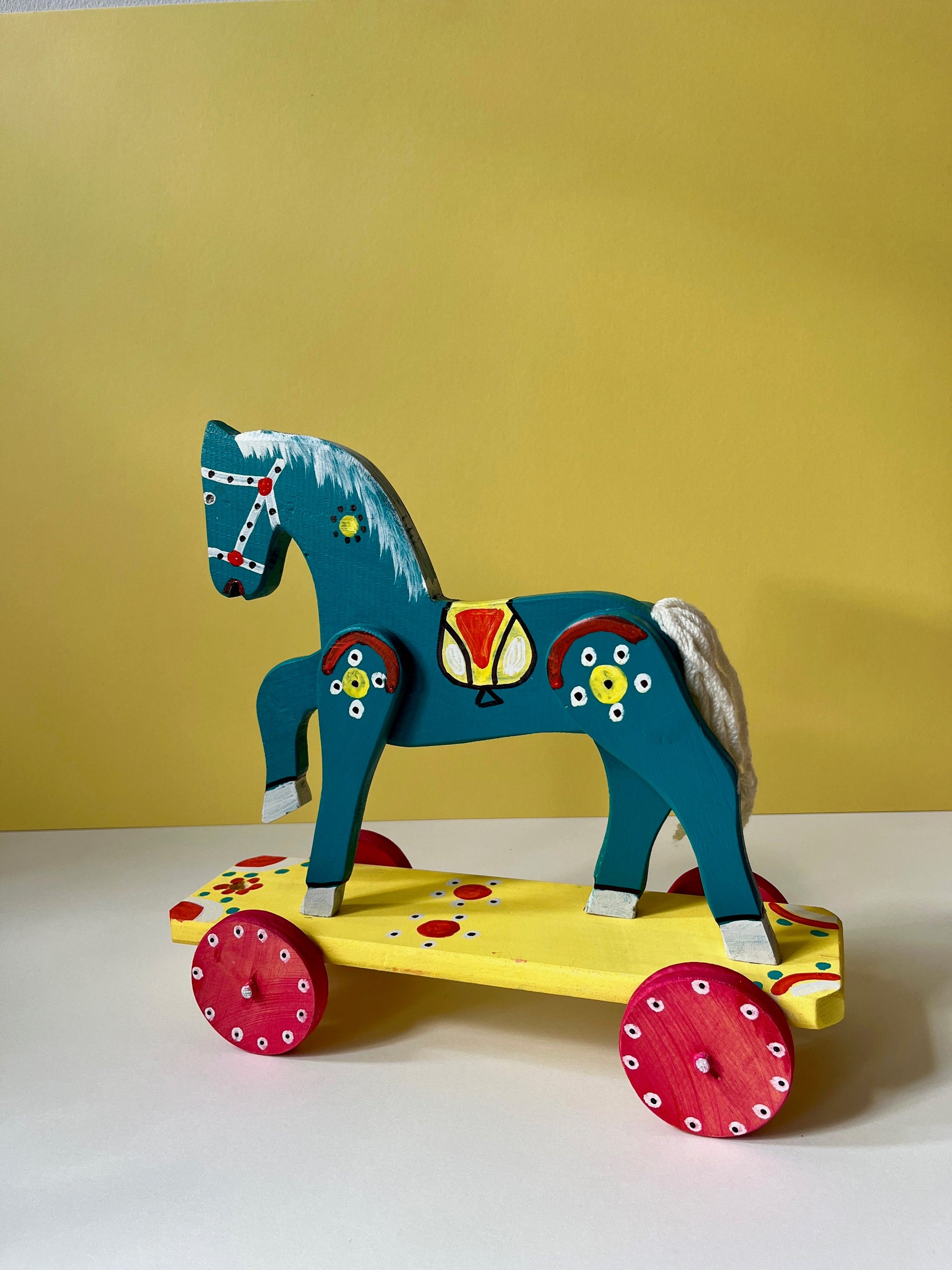 Teal Horse Pull Along Toy by Wlodzimierz