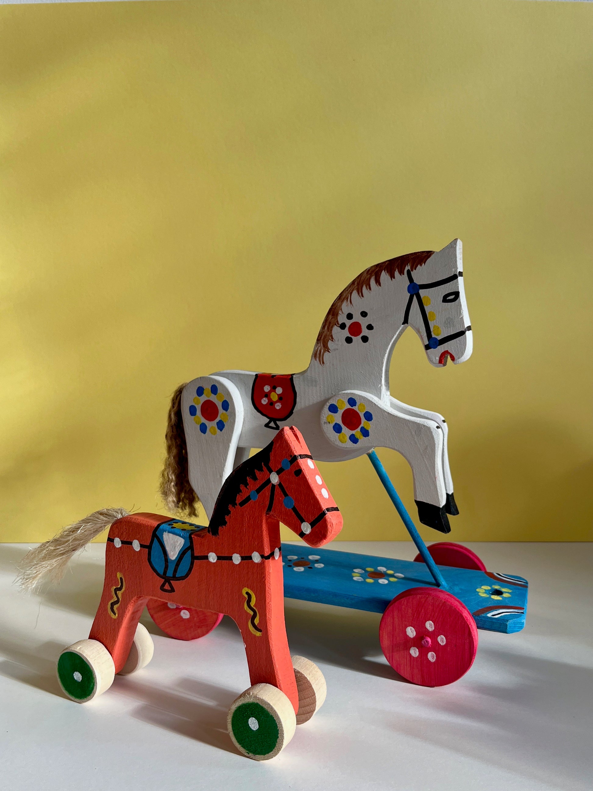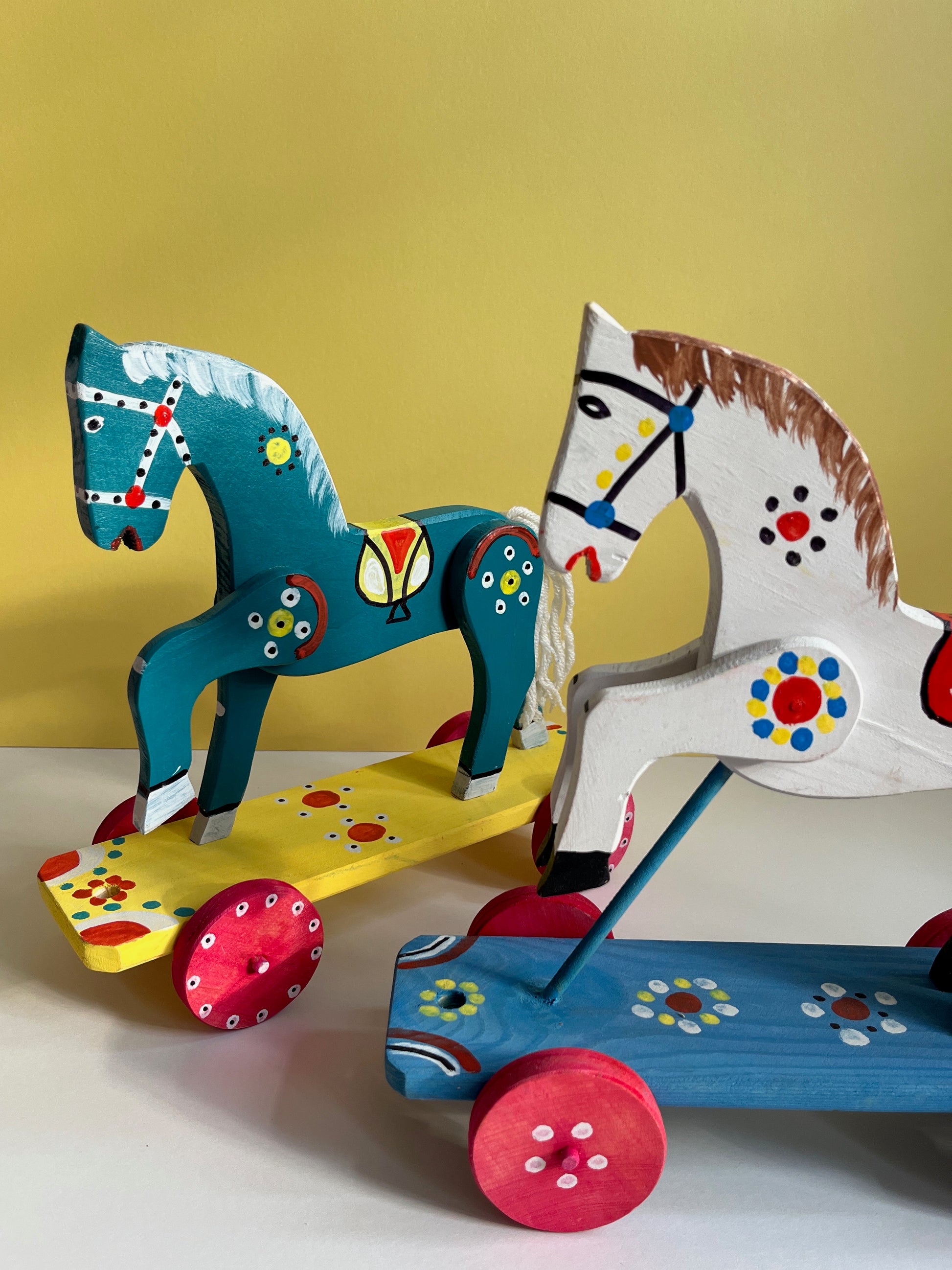 Wooden toys have been made and loved for centuries across the globe. Birds, horses, cars, spinning dancers, just to name a few, have a long tradition in folk culture in Poland. Simple and beautiful, they were hand carved in local wood using traditional tools, then hand painted in bright colours and decorated with folk ornaments. Luckily, this craft has been passed through generations so we can enjoy these lovely wooden toys nowadays!
