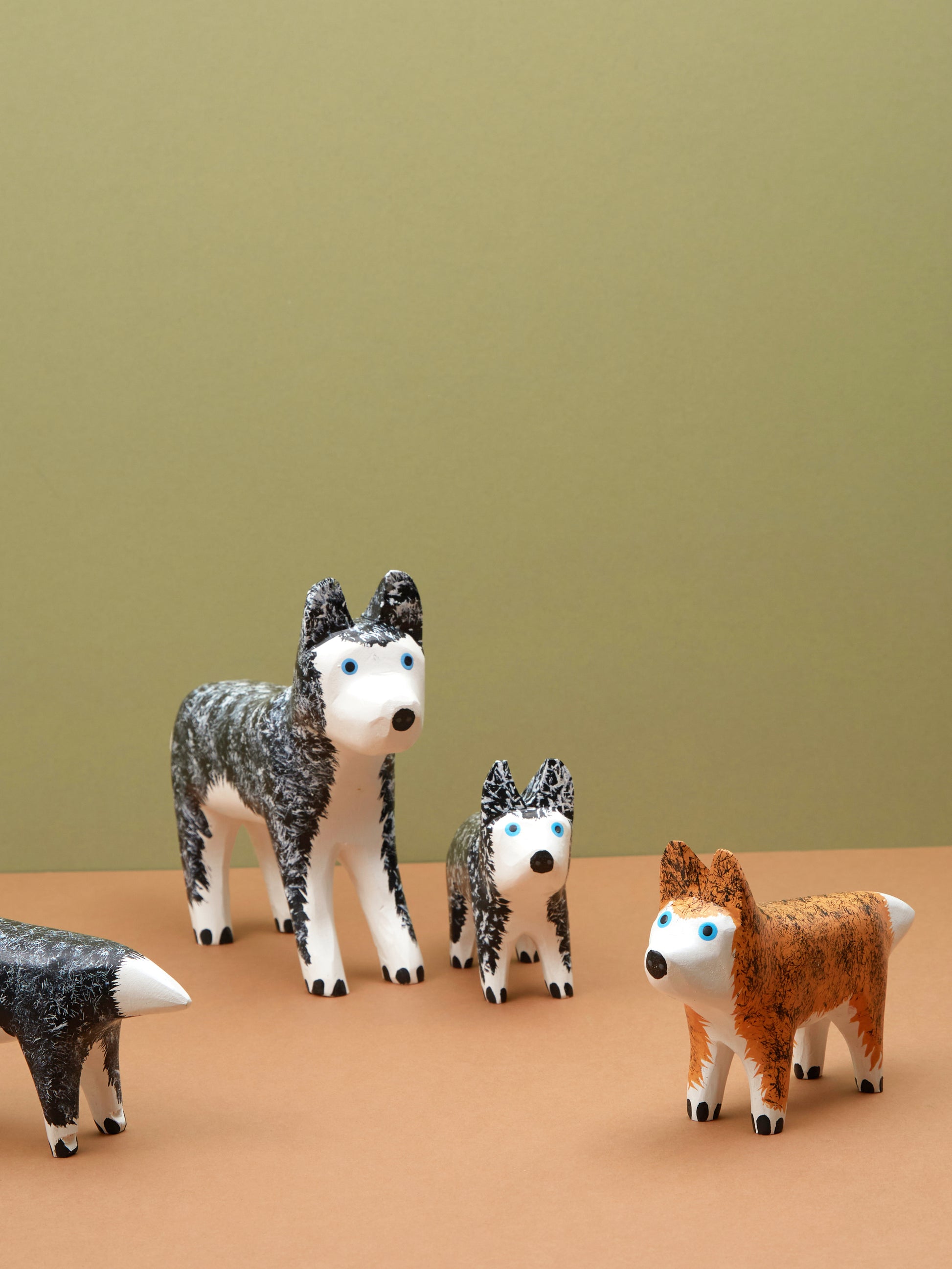 Look at this lovely wolves family. Each one is hand carved and hand painted by Wiesia. We love her delicate brush strokes and wolves blue eyes!