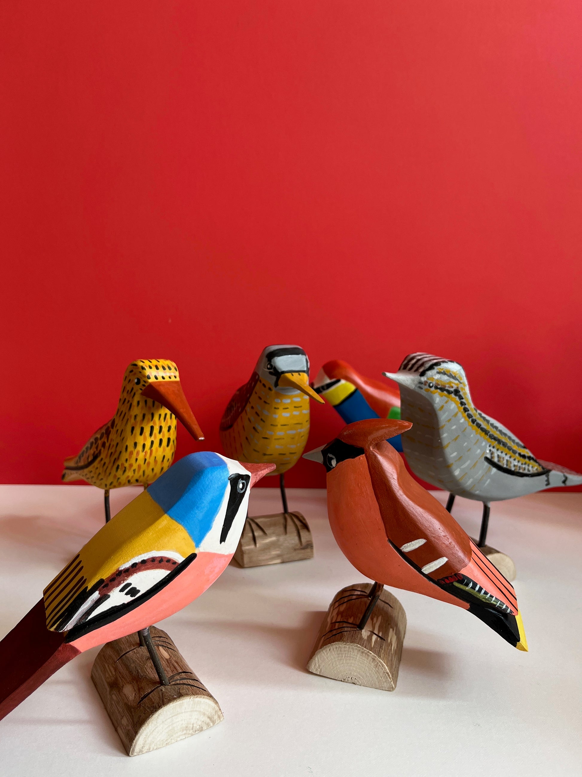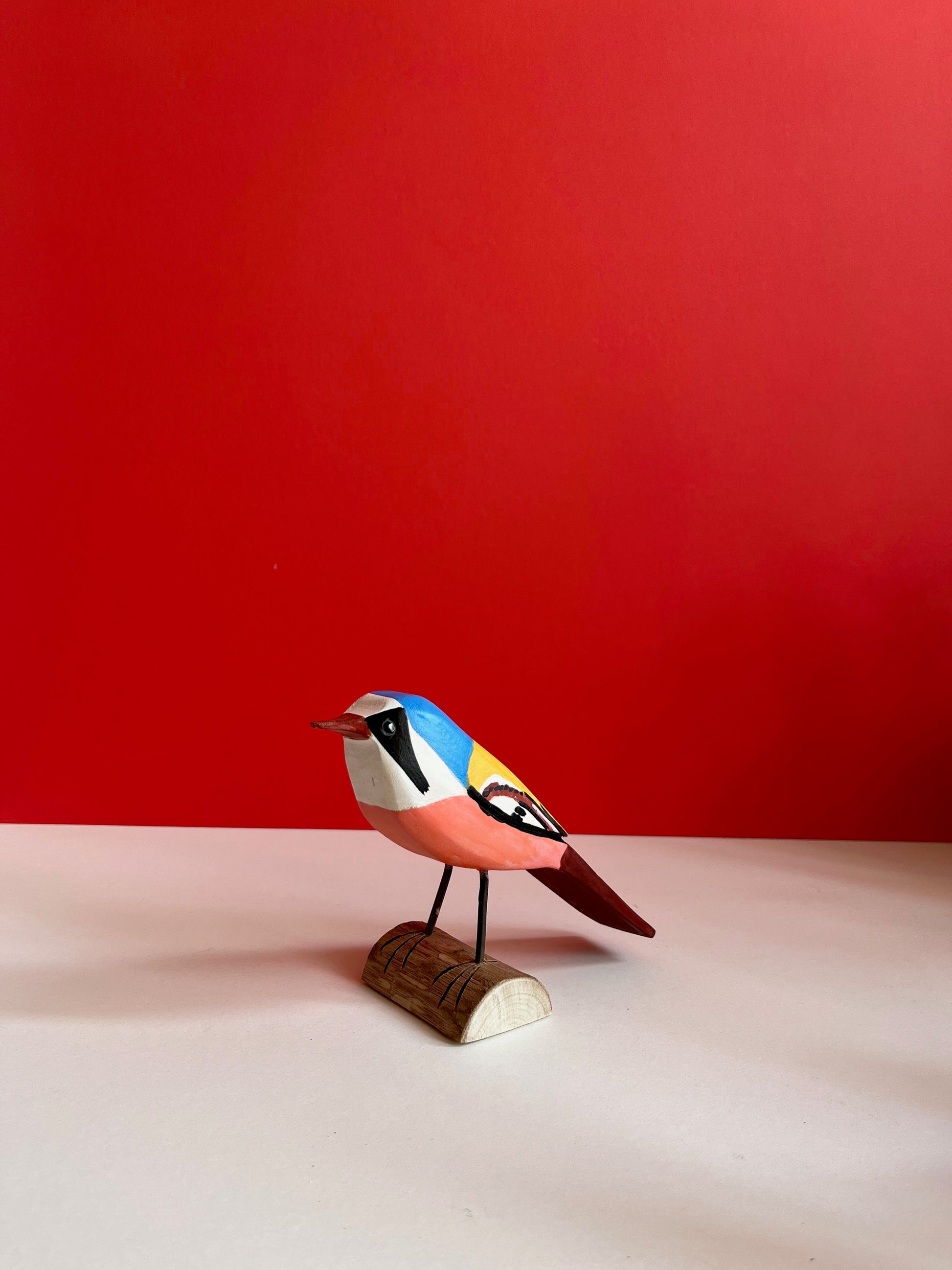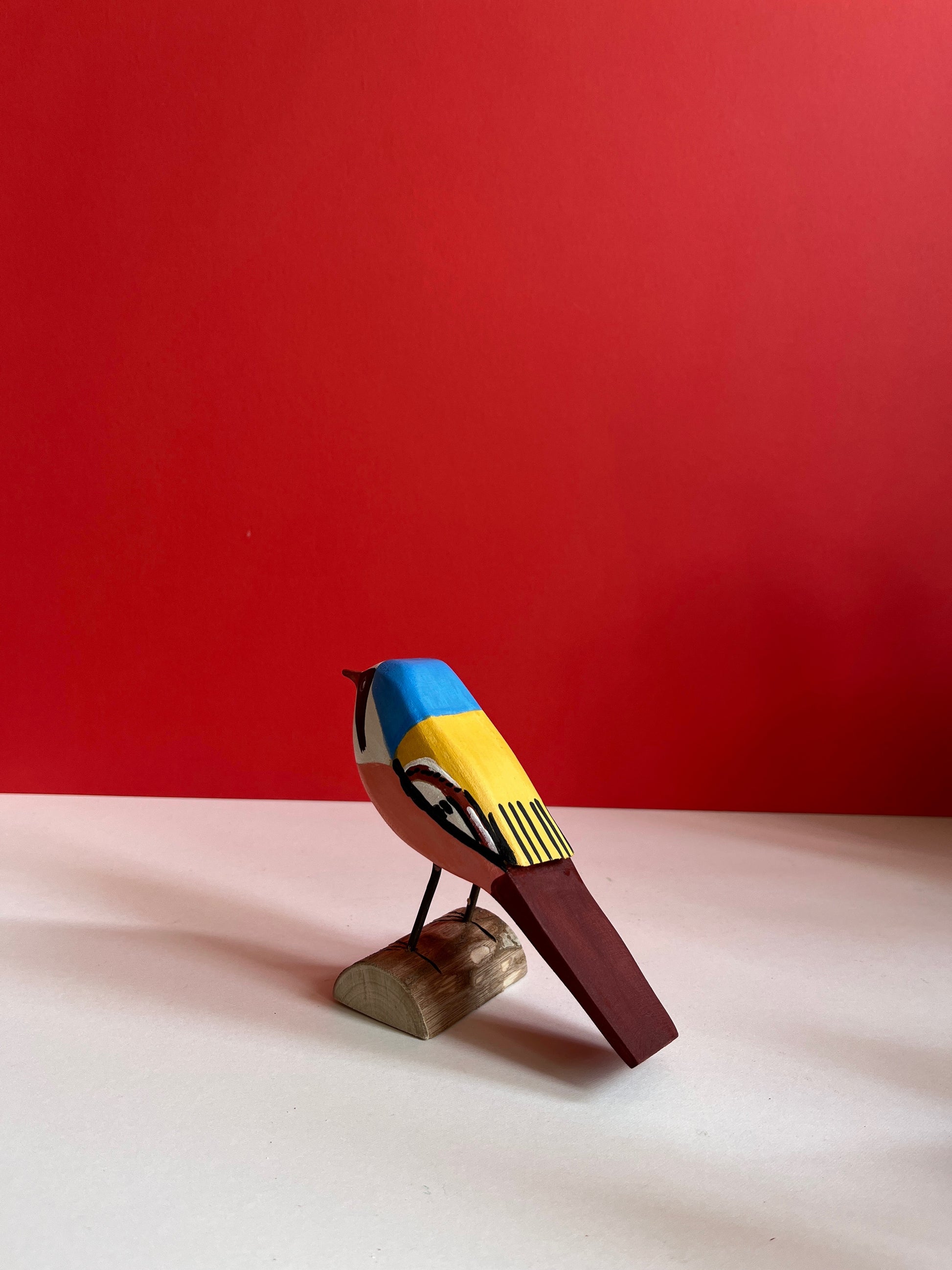 Beautiful hand carved and hand painted bird. Tadeusz, a retired forest ranger loves sharing stories about birds he saw in a forest. He is a self taught sculpturer, we love his geometric and modern style, colours and incredibly detailed hand painted patterns.