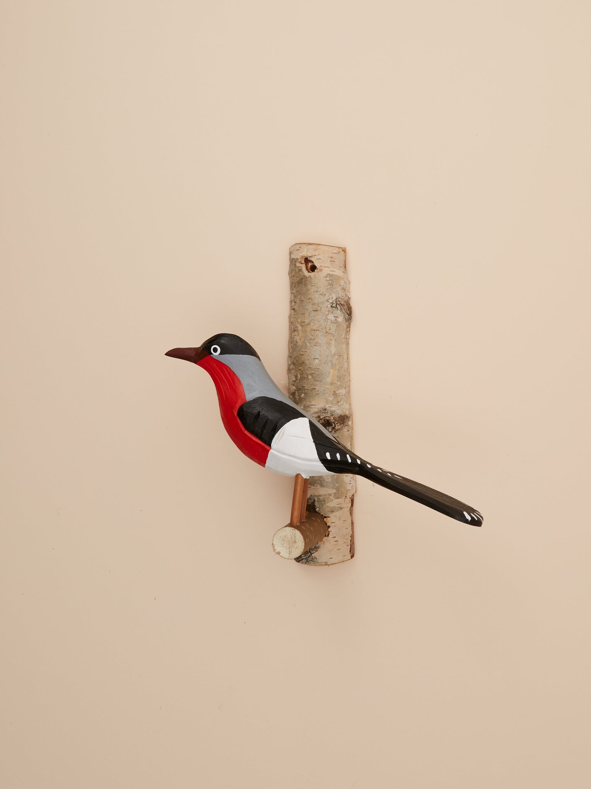 Each bird sits on a tree branch. There is a small hole in a branch so it can be hung easily. We invite you to create your own birds collection on a wall. Choose your favourite species. If you would like two, they can lovingly look into each other - just choose "looking right" and "looking left".