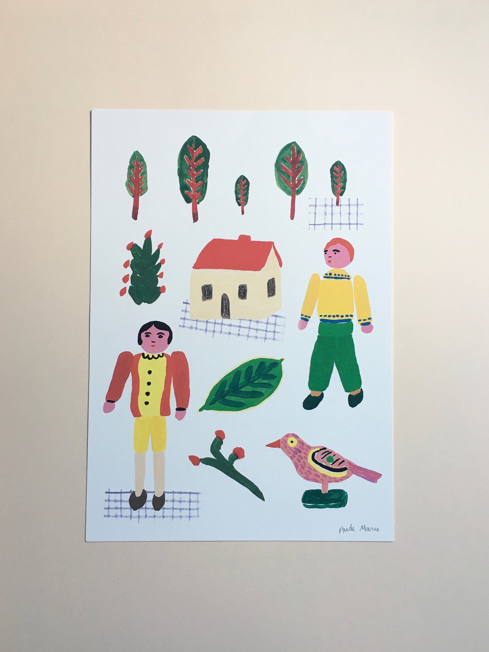 Aude Marie - a textile designer and illustrator based in Nantes, West France. She creates playful designs with a childlike sensibility. Her characters and designs are inspired by vintage toys and a nostalgic love of folklore.