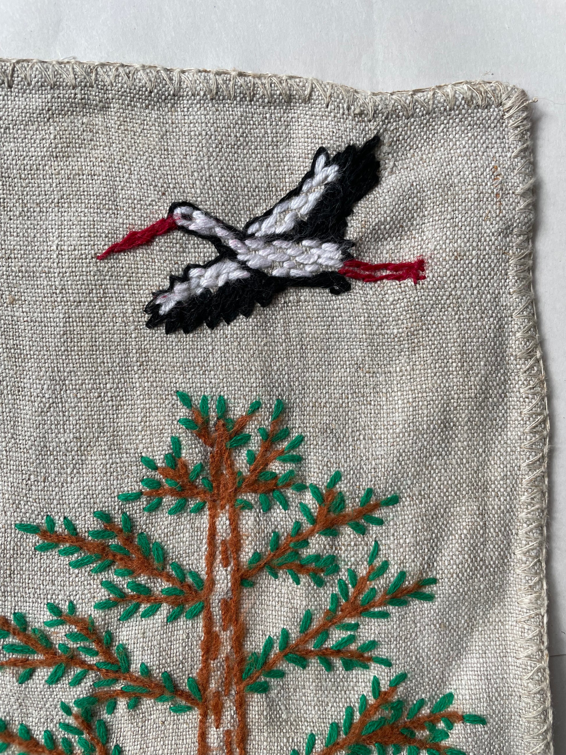 Flying Storks Hand Embroidered Wall Hanging by Anna