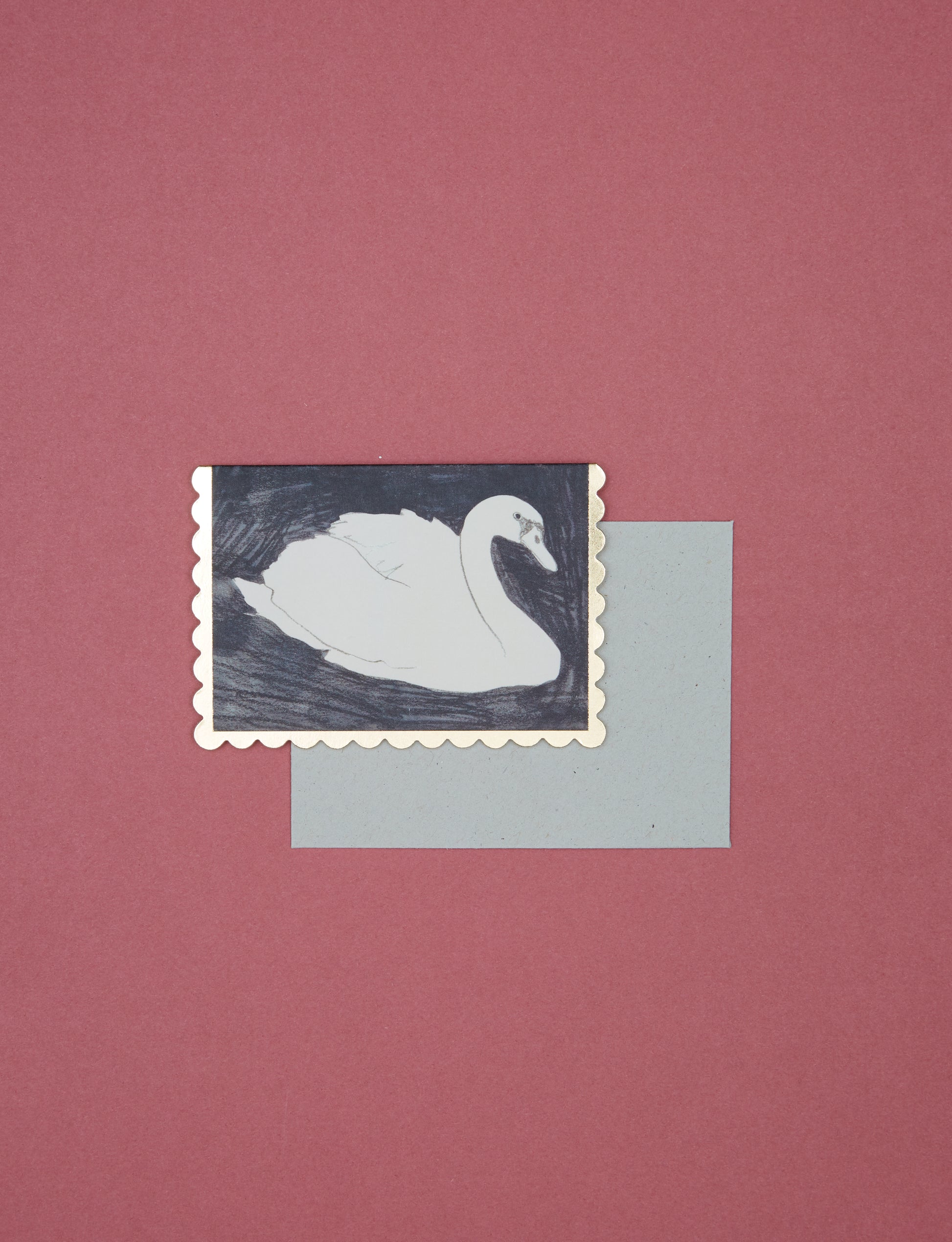 Lovely mini card with gold foil scalloped edges. Each one is paired with a recycled grey flecked C7 envelope.
