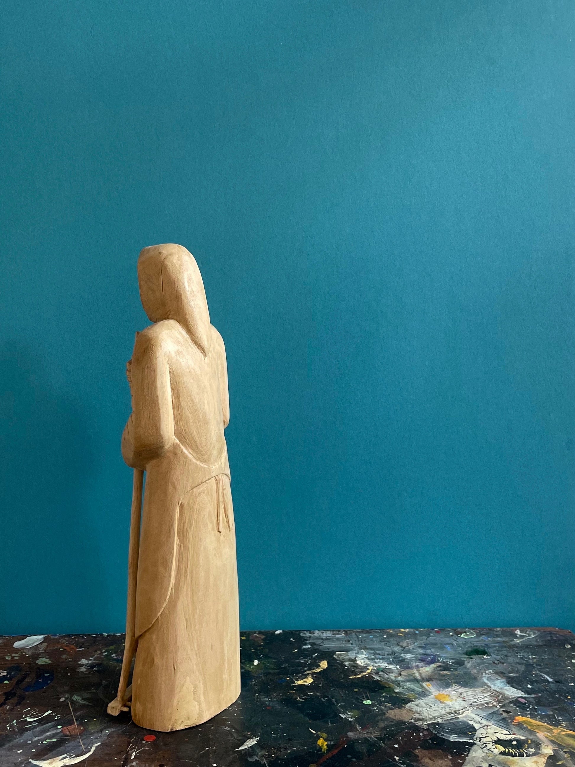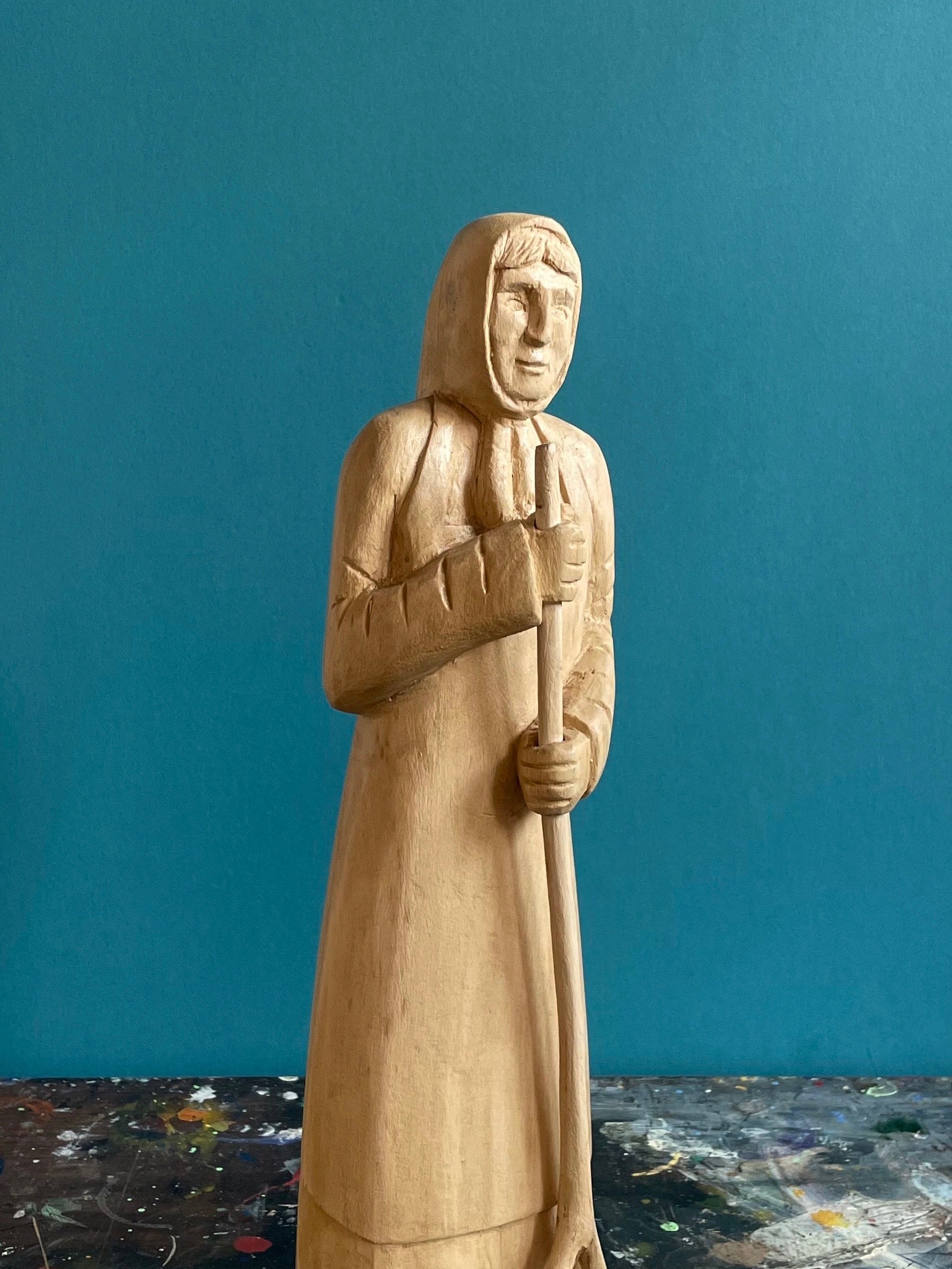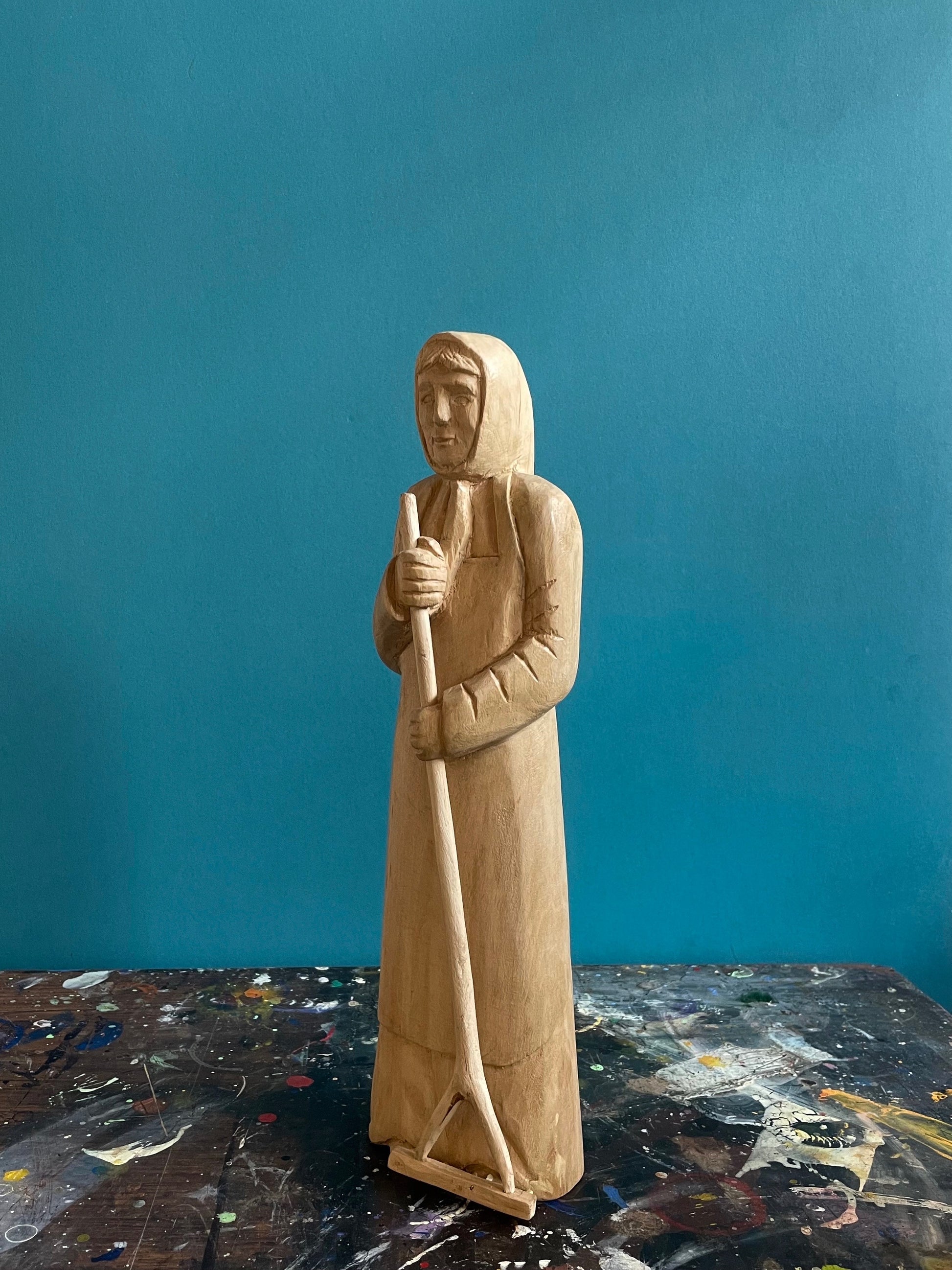 Jan is a self taught folk artist. He spent his life on a farm, hence why he likes to present traditional duties from a village life. We love his subtle hand carved details and simplicity of his forms. Some of his figures carry various tools, not used that often nowadays. His sculptures bring a peaceful mood and nostalgic feeling for past times. They are celebrations of countryside life.