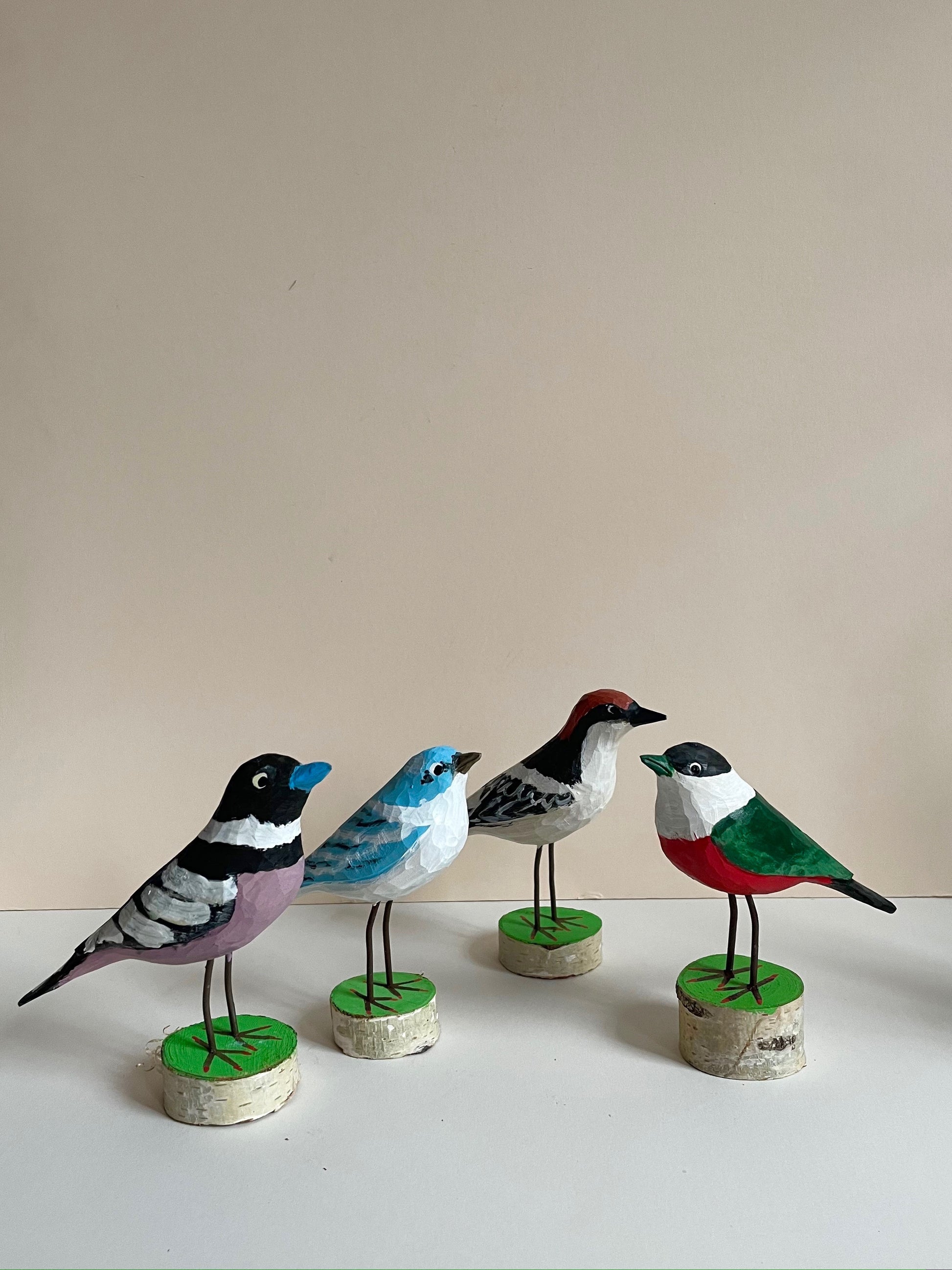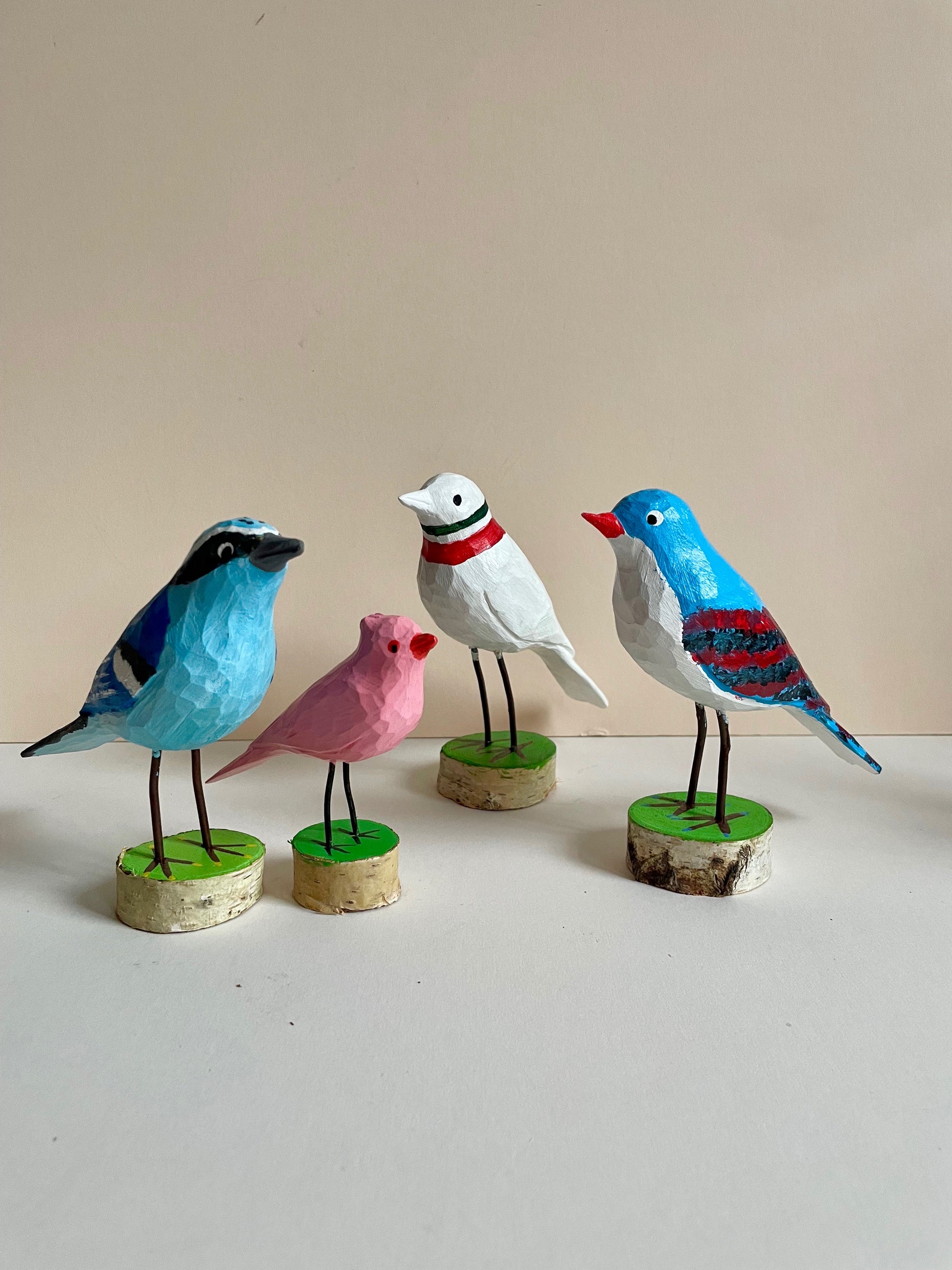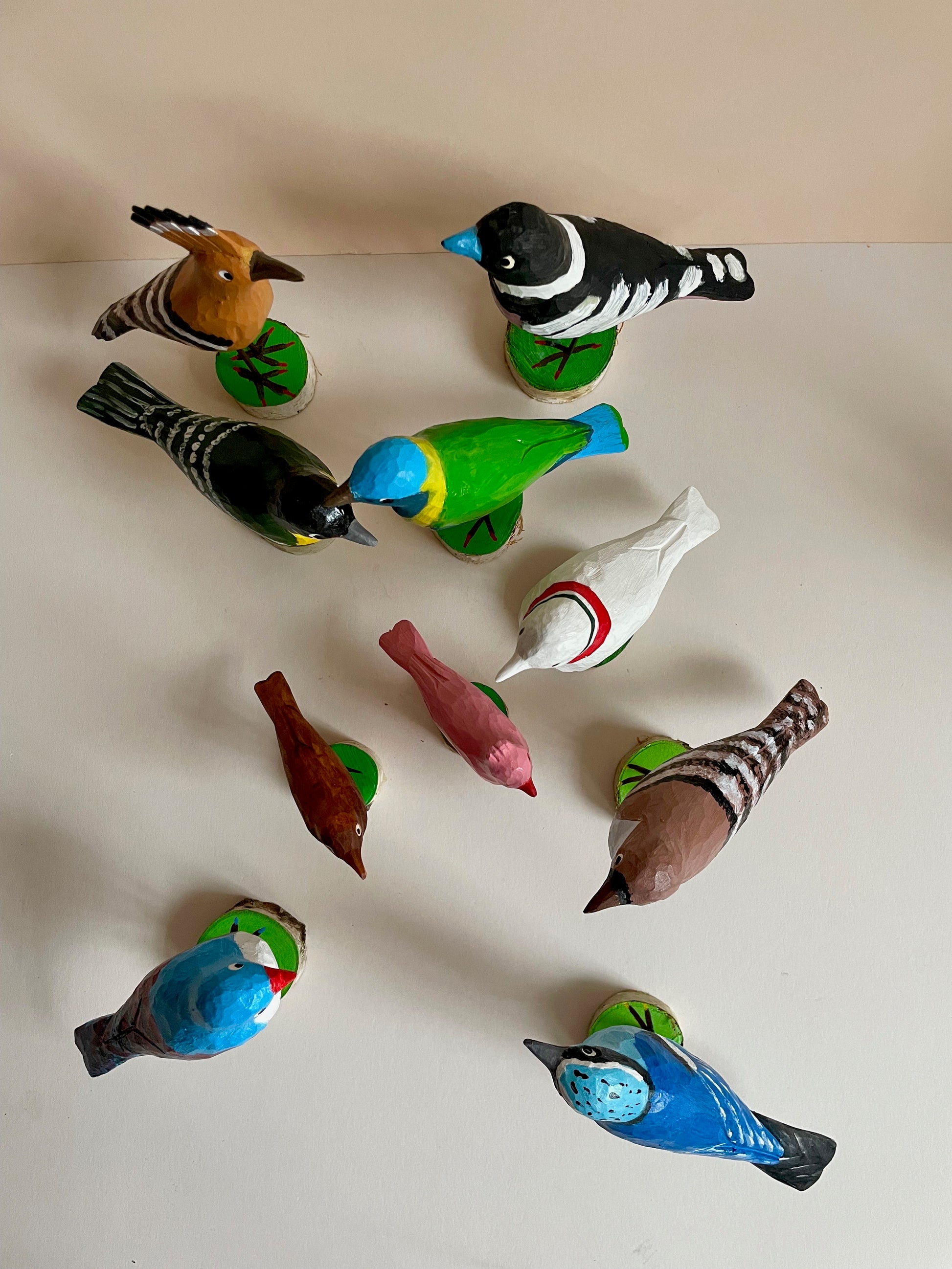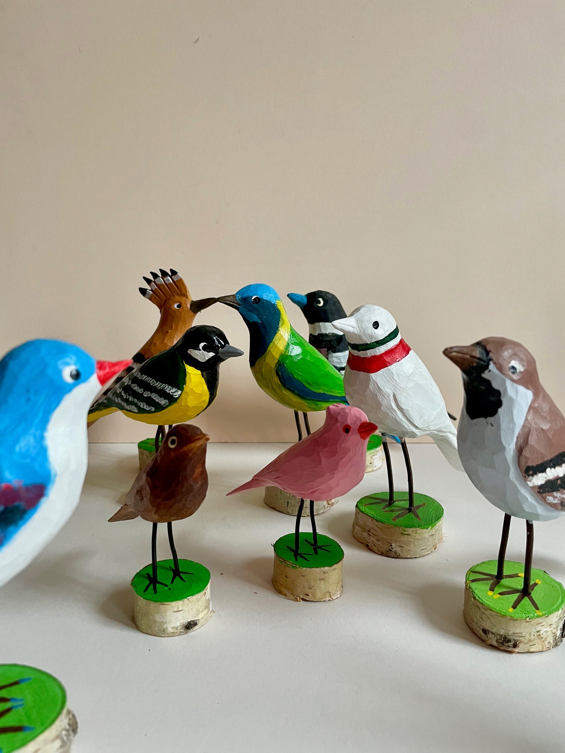 Lovely flock of colourful birds arrived. Each one is hand carved and then hand painted by artist Marian. Which one is your favourite?